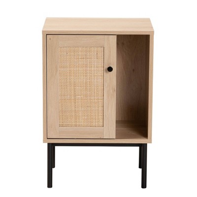 Baxton Studio Sherwin Cabinet with Woven Rattan Accent Light Brown/Black: 3 Fixed Shelves, Metal Frame, Particle Board Construction