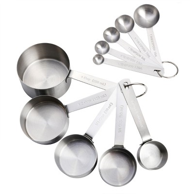 Whether it is baking a cake or cooking up a storm in the kitchen, measuring cups are a kitchen essential. At Target, you will find a wide range of kitchen tools to measure ingredients, be it cups or spoons, made of plastic, stainless steel, or even glass so that you can find the right one for you. These sturdy measurement devices are BPA-free, have good grip and are heavy-duty so that you will always measure your solid and liquid ingredients exactly. Measuring spoon sets feature, tablespoons, teaspoons and more so that you can be as accurate as needed when working with dry ingredients. The measuring cups are great for measuring liquids because of their easy-to-read numbers. Being dishwasher-safe, the cups and spoons are hassle-free to clean too!