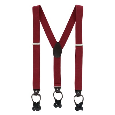 CTM Men's 1.375 Inch Wide Solid Color Y-Back Button-End Suspenders