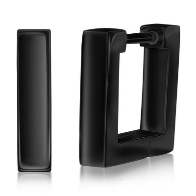 Metallo Mens Stainless Steel 7x13mm CZ Huggie Hoop Earrings - Black Plated - Black