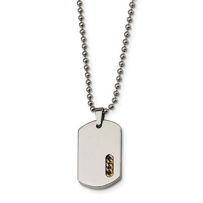Black Bow Jewelry Stainless Steel and Gold Tone Dog Tag Necklace, 22 Inch