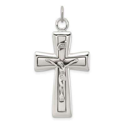 Black Bow Jewelry Men's Sterling Silver Solid Antiqued INRI Crucifix Pendant, 20 x 45mm