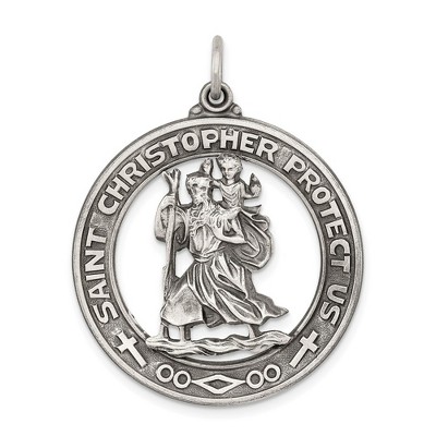 Black Bow Jewelry Sterling Silver Large Round Saint Christopher Medal Pendant