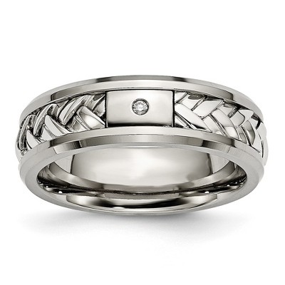 Black Bow Jewelry Mens 7mm Titanium Sterling Silver Inlay 1pt. Diamond Standard Fit Band