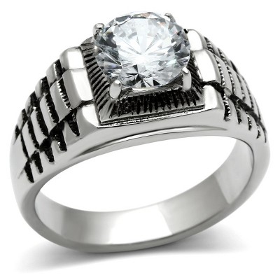 Slickblue Men's Polished Stainless Steel Ring Sparkling CZ Clear Round Fashion Jewelry, Size 8-13