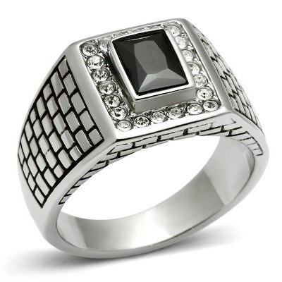 Slickblue Men’s Stainless Steel Ring, Polished Jet CZ Center with Clear Pave Stones, Statement Ring, Size 8-13