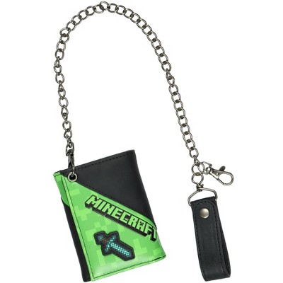 Minecraft Creeper And Diamond Sword Design TNT Tri-Fold Snap Chain Wallet with Attached Loop Strap Multicolored