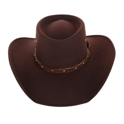 CTM Men's Felt Western Gambler Hat with Studded Hatband