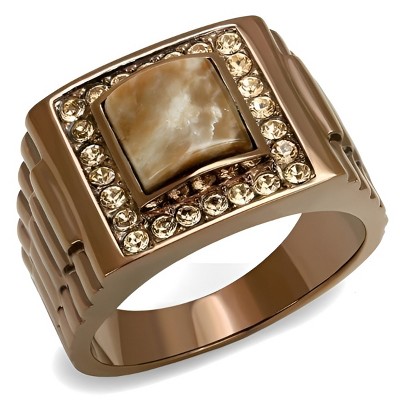 Slickblue Coffee Light Stainless Steel Ring, Brown Rain Flower Stone, Men’s Ring, Square Style, Sizes 8-13