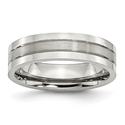 Black Bow Jewelry Stainless Steel, 6mm Flat Grooved Unisex Comfort Fit Band