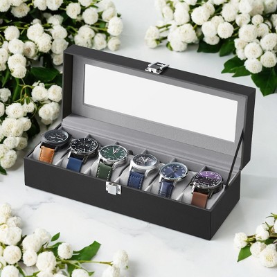 6-Slot Watch Box, Large Glass Lid Watch Organizer