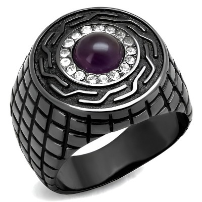 Slickblue Light Black Stainless Steel Ring, Men's Jewelry with Synthetic Amethyst Crystal, Single-Tone Style, Sizes 8-13