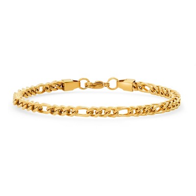 Steeltime Men's 18k gold plated stainless steel figaro wheat link bracelet