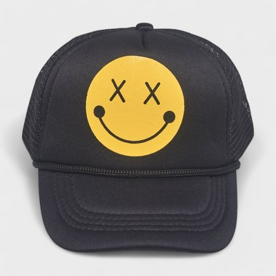 Black Smiley Face Baseball Cap Trucker Hat with Smiley Face Design – Classic Mesh Back Cap, Comfortable Fit, Adjustable Snapback
