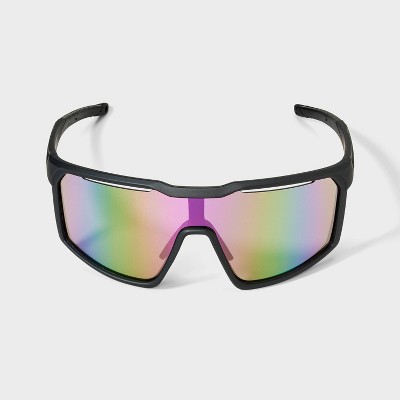 Men's Rubberized Plastic Shield Sunglasses with Mirrored Lenses - All In Motion™ Black: Scratch-Resistant, UV Protection