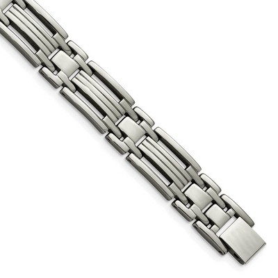 Black Bow Jewelry 12mm Multi-Finish Titanium Link Bracelet - 8.75 Inch
