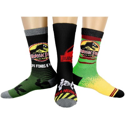 Jurassic Park Socks Mens' Dinosaur Amusement Island-Inspired Adult Crew Socks 3 Pair