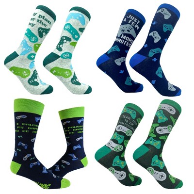 Crazy Dog Mens Funny Video Game Socks Bundle 4 Pack Socks With Awesome Graphics for Men