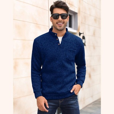 WhizMax Men's Casual Henley Pullover Sweater Slim Fit Knitted Thermal Fleece Polo Sweatshirt