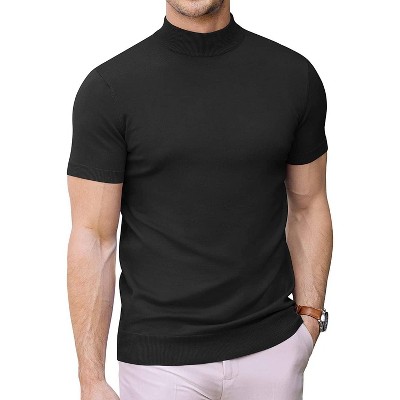 COOFANDY Mens Casual Mock Turtleneck Sweater Short Sleeve Slim Fit Pullover Basic Knit Tee