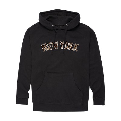 Men's - Instant Message - Leopard Print New York Graphic Fleece Pullover Hoodie