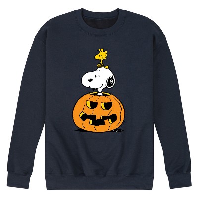 Men's - Peanuts - Snoopy and Woodstock Halloween Pumpkin Graphic Fleece Sweatshirt