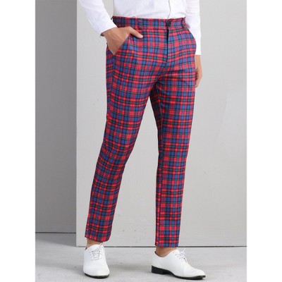 Lars Amadeus Men's Color Block Slim Fit Flat Front Plaid Dress Pants