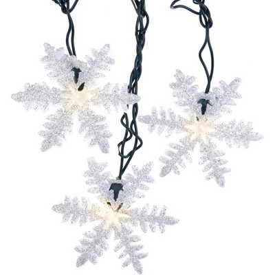 Kurt Adler Indoor/Outdoor Novelty Lights Set, Incandescent Mini bulbs, 10 Lights White Snowflakes, 12ft