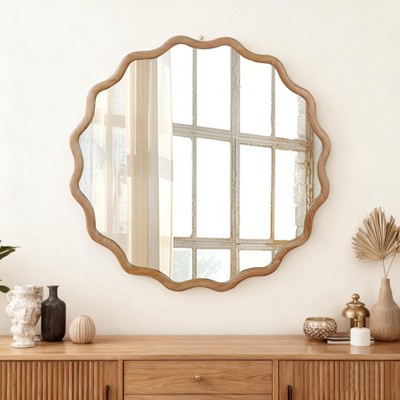 KTMBDW Curved Wood Frame Accent Mirror, Farmhouse French Country Decorative Wall Mirror