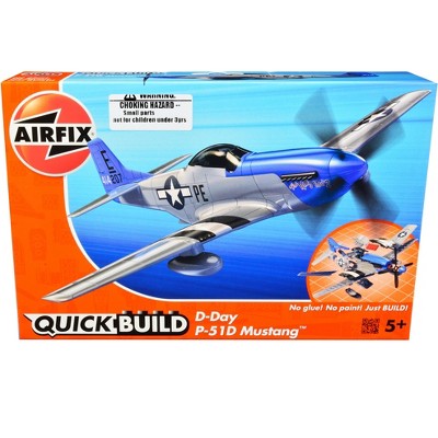 Skill 1 Model Kit D-Day P-51D- Mustang Snap Together Painted Plastic Model Airplane Kit by Airfix Quickbuild