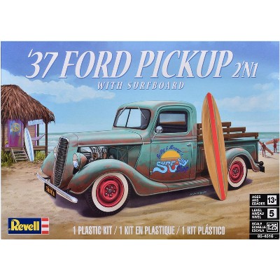 Level 5 Model Kit 1937 Ford Pickup Truck with Surfboard 2-in-1 Kit 1/25 Scale Model by Revell