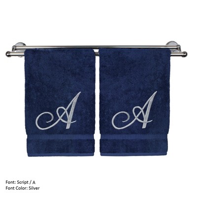 BC BARE COTTON Monogrammed Washcloth Towel, Personalized Gift, 13x13 Inches - Set of 2 - Navy - Silver Script