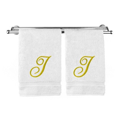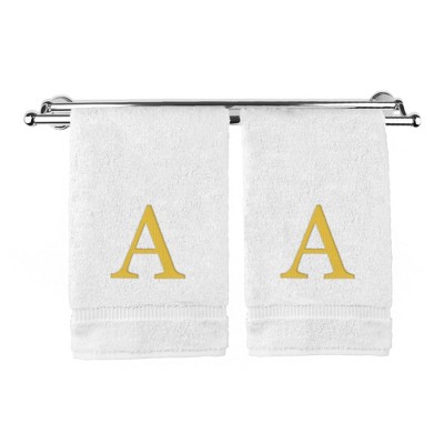 BC BARE COTTON Monogrammed Hand Towel, 100% Turkish Cotton - Set of 2 - White - Gold Block