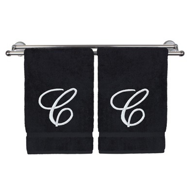 BC BARE COTTON Monogrammed Hand Towel, 100% Turkish Cotton - Set of 2 - Black - White Script