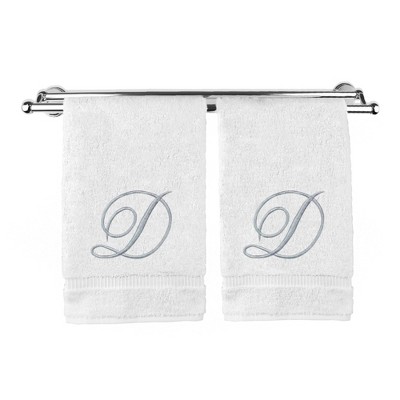 BC BARE COTTON Monogrammed Hand Towel, 100% Turkish Cotton - Set of 2 - White - Silver Block