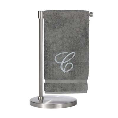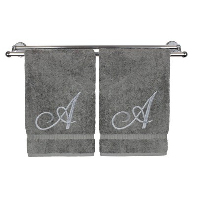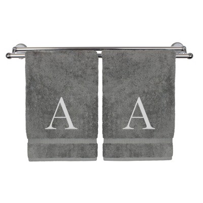 BC BARE COTTON Monogrammed Hand Towel, 100% Turkish Cotton - Set of 2 - Gray - Silver Block
