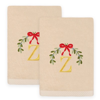 Linum Home Textiles Christmas MISTLETOE MONOGRAM - Embroidered Luxury 100% Turkish Cotton Hand Towels (Set of 2)