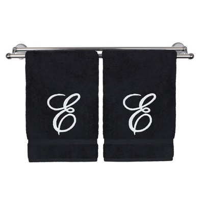BC BARE COTTON Monogrammed Hand Towel, 100% Turkish Cotton - Set of 2 - Black - White Script