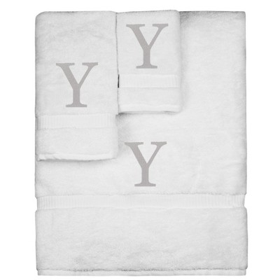 BC BARE COTTON Monogrammed Towel Set, Personalized Gift, Set of 3 - White - Silver Block