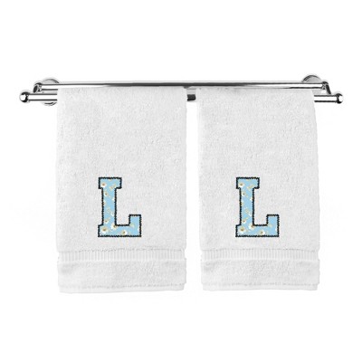 BC BARE COTTON Monogrammed Hand Towels, Personalized Gift, Set of 2 - Embroidered Writing with Light Blue