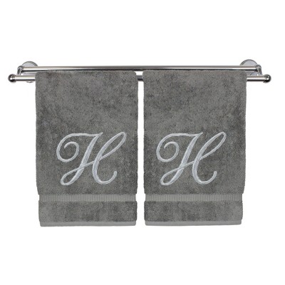 BC BARE COTTON Monogrammed Hand Towel, 100% Turkish Cotton - Set of 2 - Gray - Silver Script