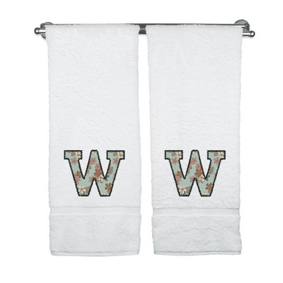 BC BARE COTTON Monogrammed Towels, Personalized Gift, Set of 2 - Embroidered Writing with Greenish Cyan