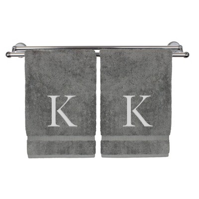 BC BARE COTTON Monogrammed Hand Towel, 100% Turkish Cotton - Set of 2 - Gray - Silver Block