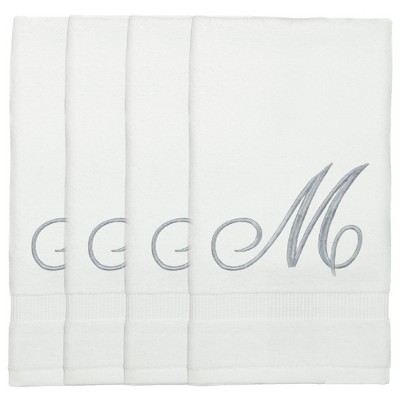 BC BARE COTTON Monogrammed Fingertip Towels, Personalized Gift, 11 x 18 Inches - Set of 4 - White - Silver Script