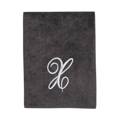Avanti Granite with Silver Script Monogram Bath Towel Letter X