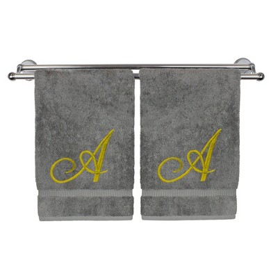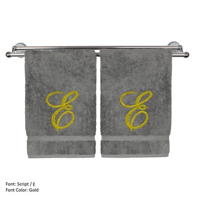 BC BARE COTTON Monogrammed Hand Towel, 100% Turkish Cotton - Set of 2 - Gray - Gold Script