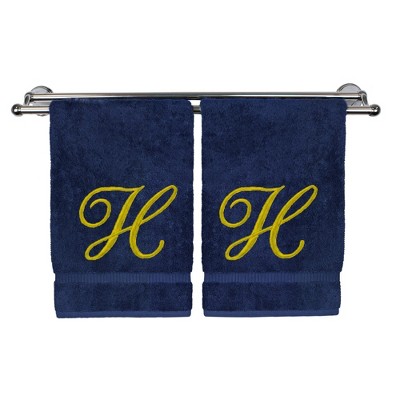 BC BARE COTTON Monogrammed Hand Towel, 100% Turkish Cotton - Set of 2 - Navy - Gold Script