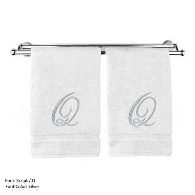 BC BARE COTTON Monogrammed Bath Towel, Personalized Gift, 27 x 54 inches - Set of 2 - White - Silver Script