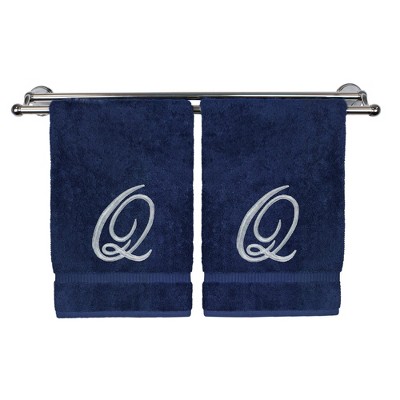 BC BARE COTTON Monogrammed Hand Towel, 100% Turkish Cotton - Set of 2 - Navy - Silver Script
