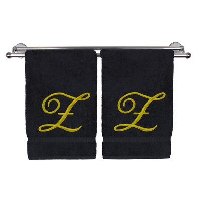 BC BARE COTTON Monogrammed Hand Towel, 100% Turkish Cotton - Set of 2 - Black - Gold Script